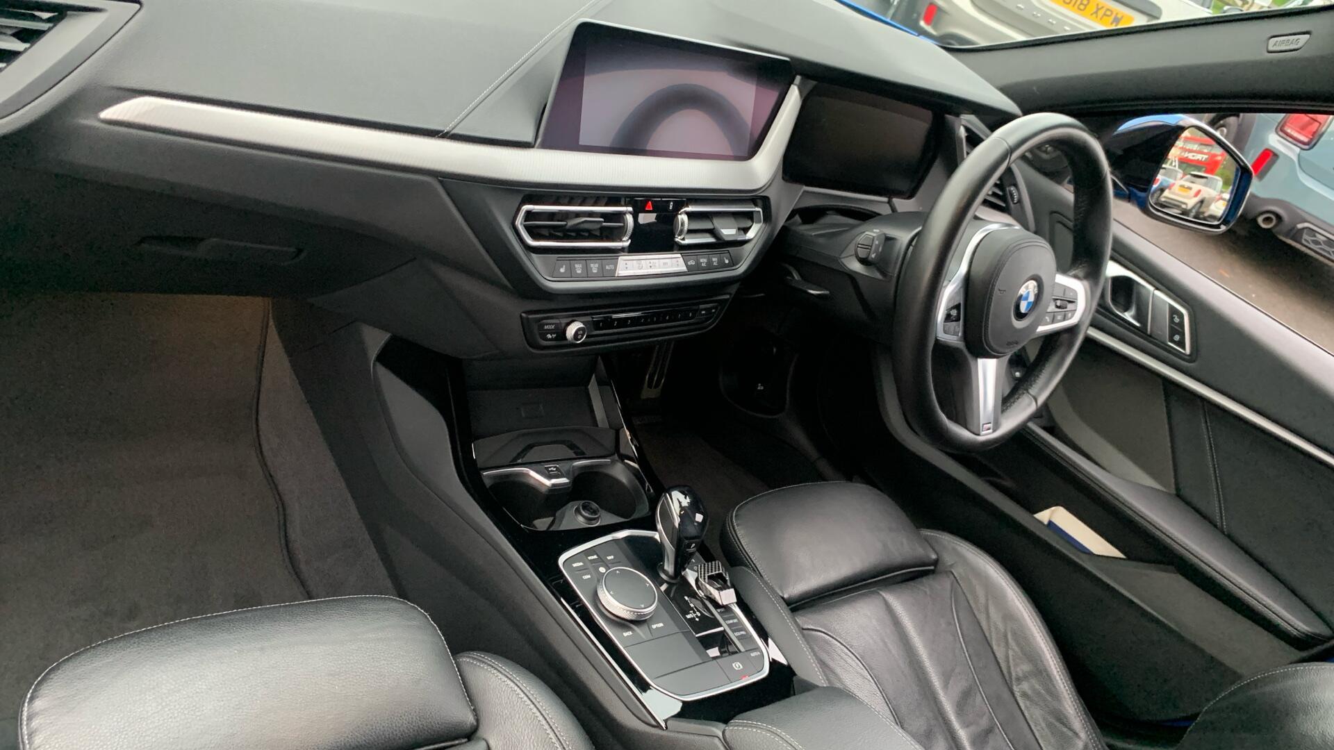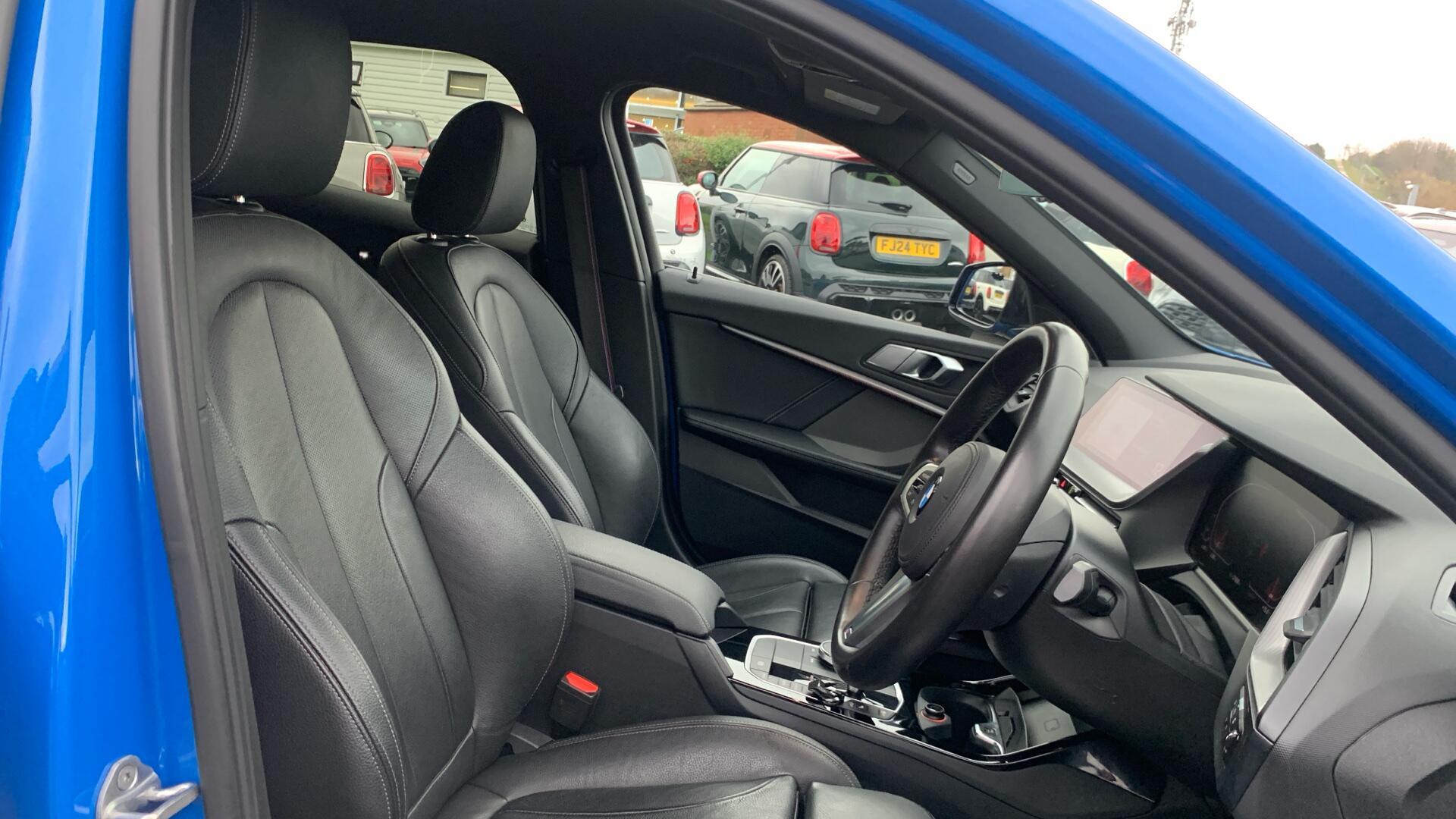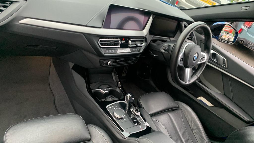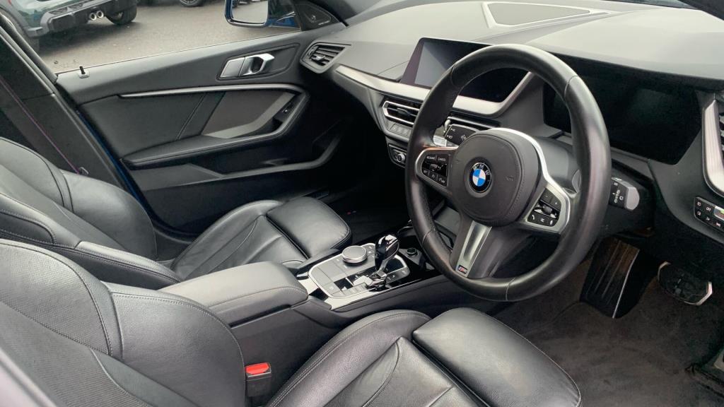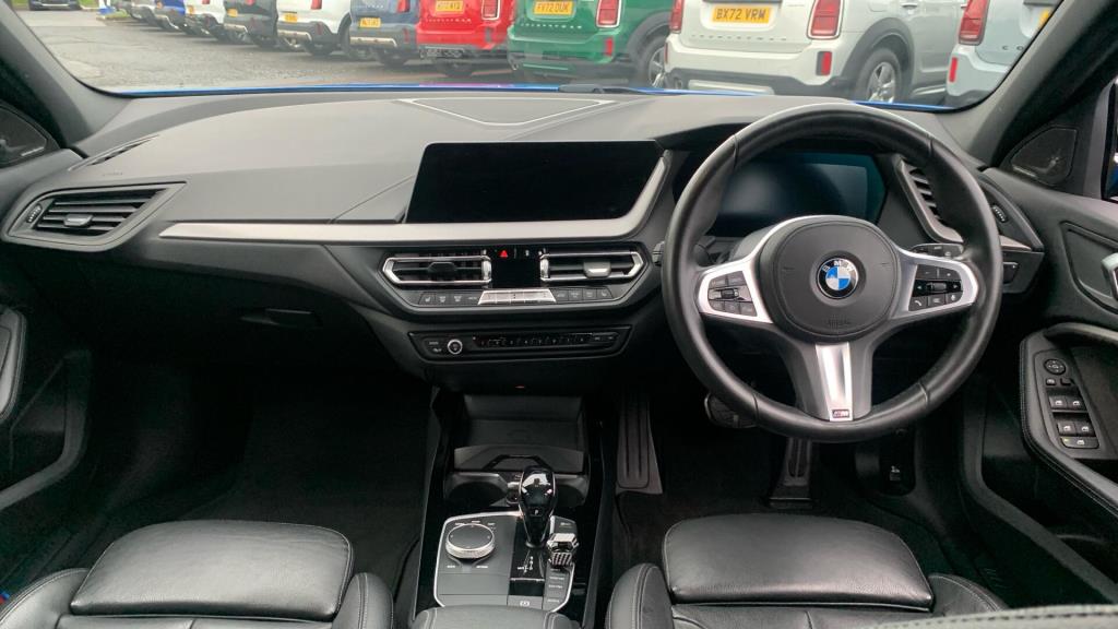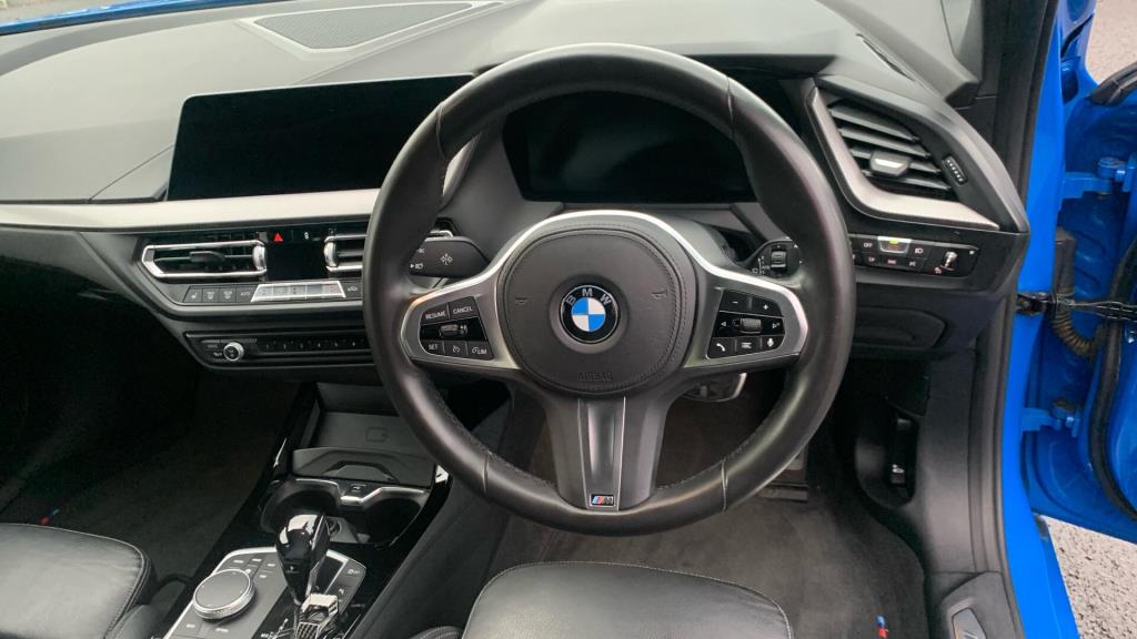 Doors 5 Previous Owners 1 Features 18" 554M V-spoke style Orbit Grey alloy, M Sport Brakes with Blue Calipers, Automatic DCT Transmission, M Sport Steering, M Sport Seat Belts, Sun Protection Glass, Enhanced Bluetooth- wireless charging, Live Cockpit Professional, WiFi Hotspot, Harman Body Type Hatchback Seats 5 Interior / Comfort Adjustable Steering Column, Air Conditioning - front, All Round Electric Windows, Cruise Control, Mats, Outside Temp Gauge, Rear Head Restraints, Seats - Electric Adjustment Driver only, Seats - Heated Front, Split Rear Seat/Thru Load Facility Exterior Features Central Locking, Electric Folding Door Mirrors, Front + Rear Parking Sensors, Front Foglights, High Level Brake Light, Front + Rear Parking Sensors, Front Foglights Emission Class Euro 6d Consumption Extra Urban 4.2 L/Km / 67.3 Mpg Consumption Urban Cold 6.4 L/Km / 44.1 Mpg Consumption Combined 7 L/Km / 40.4 Mpg -