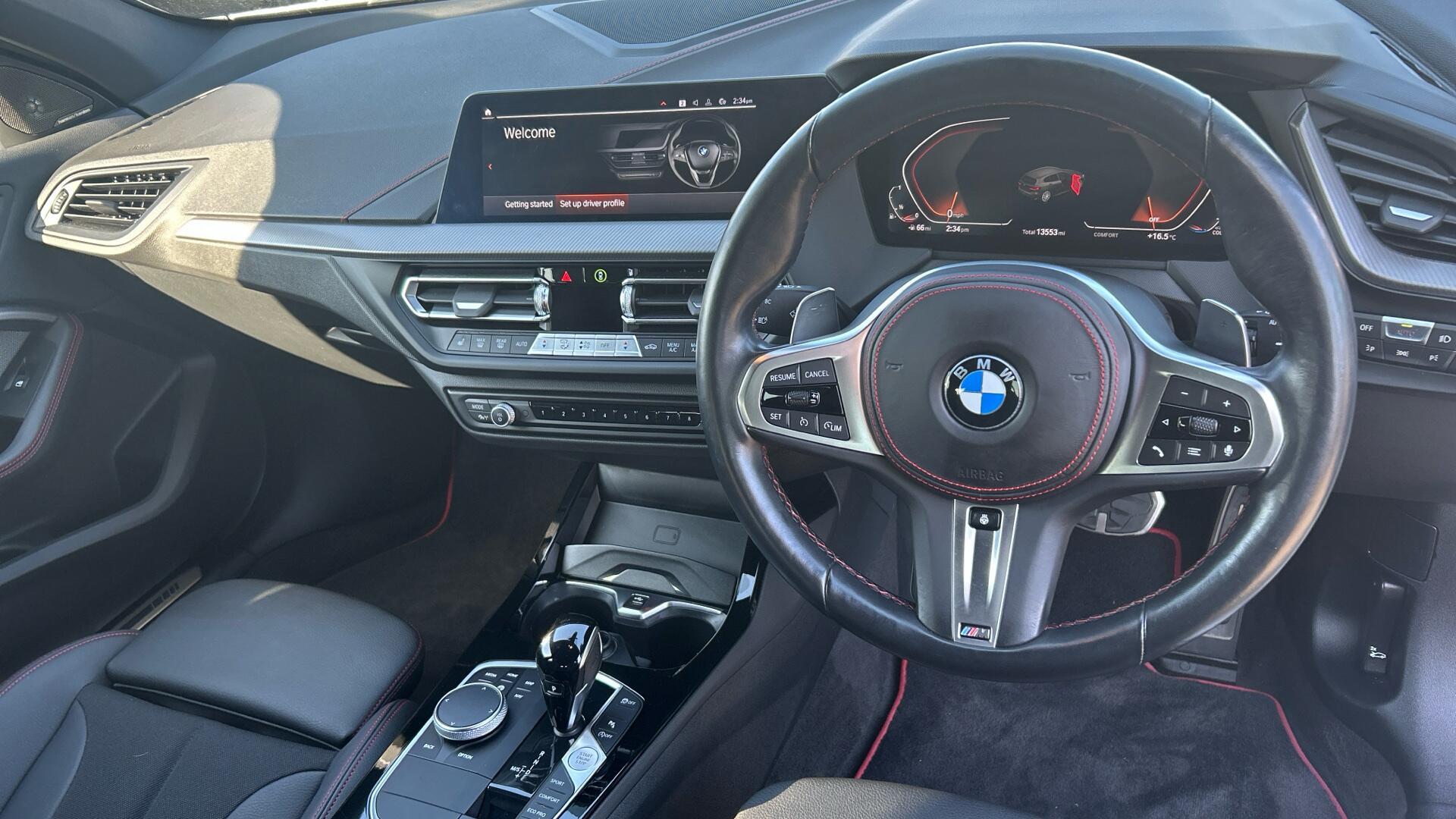 - M Sport Multi-Function Leather Steering Wheel with Three-Spoke Design with Unique Red Stitch
