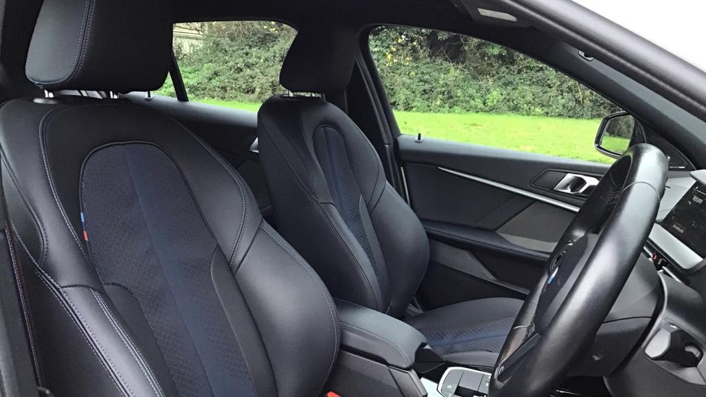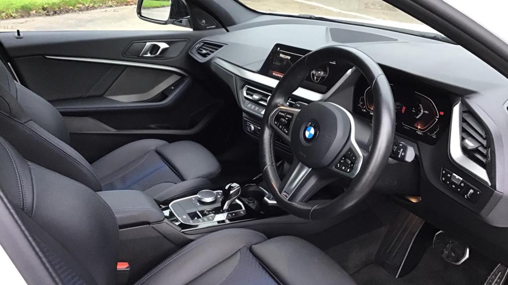 Doors 5 Features 19" 552M Double-spoke style alloy wheels, M Sport Brakes with Blue Calipers, Automatic DCT Transmission, M Sport Seat Belts, Harman/Kardon Surround Sound Audio, Indv. high-gloss shadowline- extended, M Sport Spoiler, Special Steering Bluetooth Wifi, Body Type Hatchback Seats 5 Interior / Comfort Adjustable Steering Column, Air Conditioning - front, All Round Electric Windows, Cruise Control, Mats, Outside Temp Gauge, Rear Head Restraints, Seats - Electric Adjustment Driver only, Seats - Heated Front, Split Rear Seat/Thru Load Facility Exterior Features Central Locking, Electric Folding Door Mirrors, Front + Rear Parking Sensors, Front Foglights, High Level Brake Light, Front Foglights Emission Class Euro 6d Consumption Extra Urban L/Km / Mpg Consumption Urban Cold L/Km / Mpg Consumption Combined 6.4 L/Km / 44.1 Mpg -
