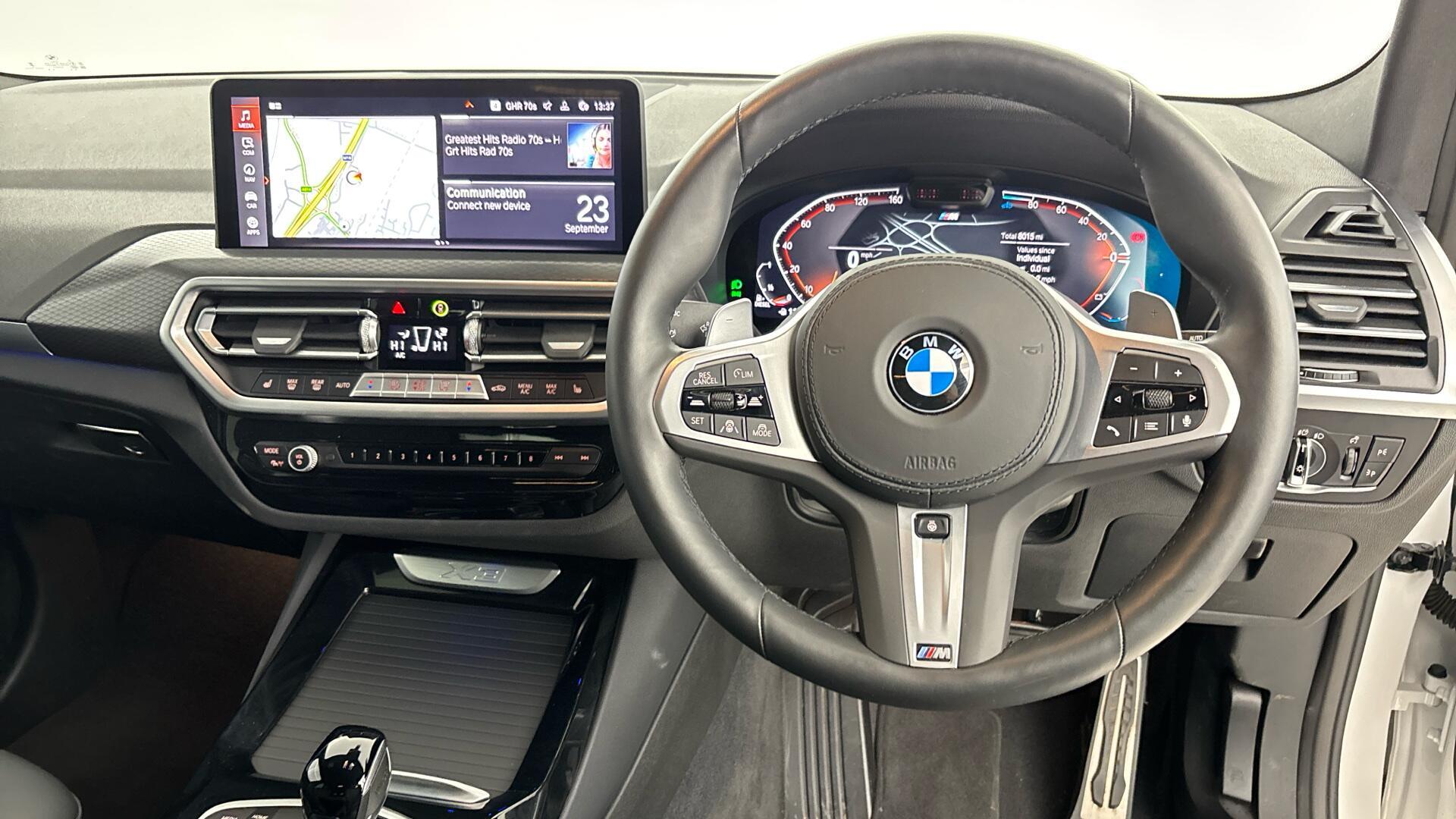 Doors 5 Features 20" 787 M Double-spoke Alloy Wheels, M Sport Brakes with Blue Calipers, Tyre Repair Kit, Adaptive Suspension, Heated Steering Wheel, BMW Individual Lights Shadow Line, Comfort Access, M Sport Seat Belts, Galvanic Controls, Sun Protection Glass, Rear Body Type SUV Seats 5 Interior / Comfort Adjustable Steering Column, Air Conditioning - front, All Round Electric Windows, Cruise Control, Driver's Seat Adjustment (manual), Mats, Outside Temp Gauge, Rear Head Restraints, Seats - Heated Front, Split Rear Seat/Thru Load Facility Exterior Features Central Locking, Electric Folding Door Mirrors, Front + Rear Parking Sensors, High Level Brake Light, Rear Parking Sensors, Rear Parking Sensors, Roof Rails/Rack Emission Class Euro 6d Consumption Extra Urban L/Km / Mpg Consumption Urban Cold L/Km / Mpg Consumption Combined 6.3 L/Km / 44.8 Mpg -