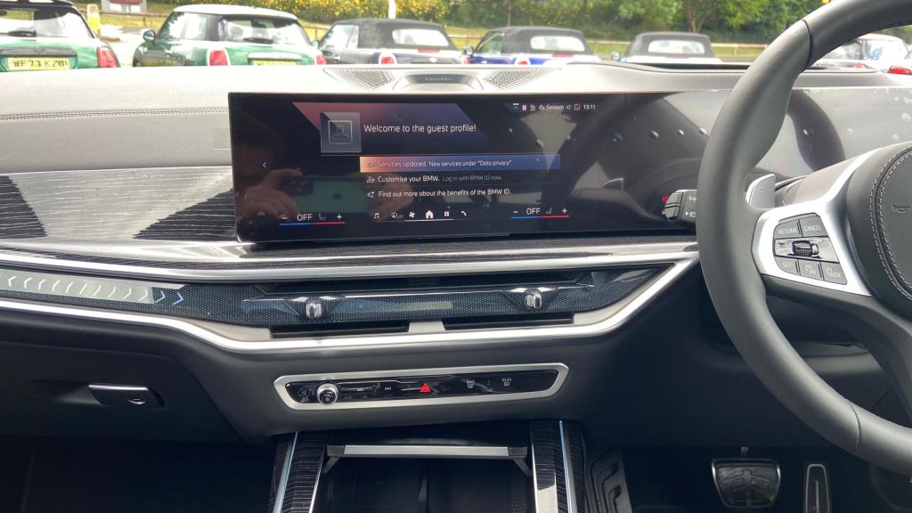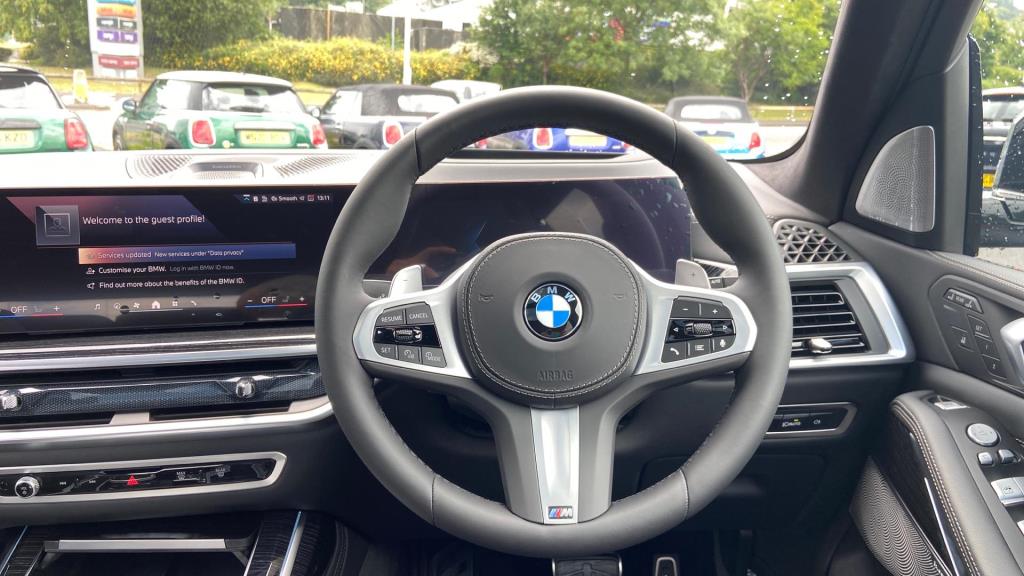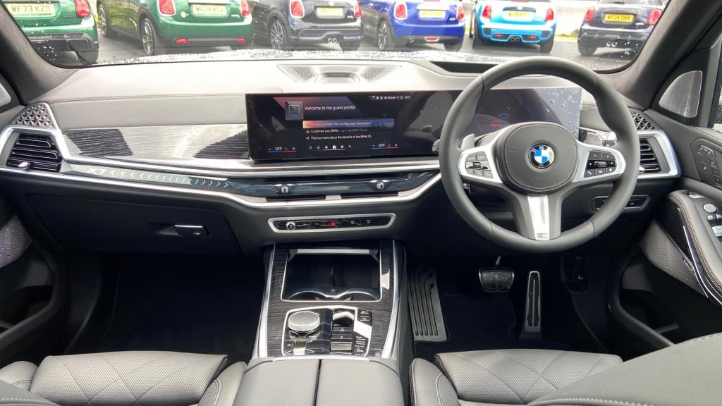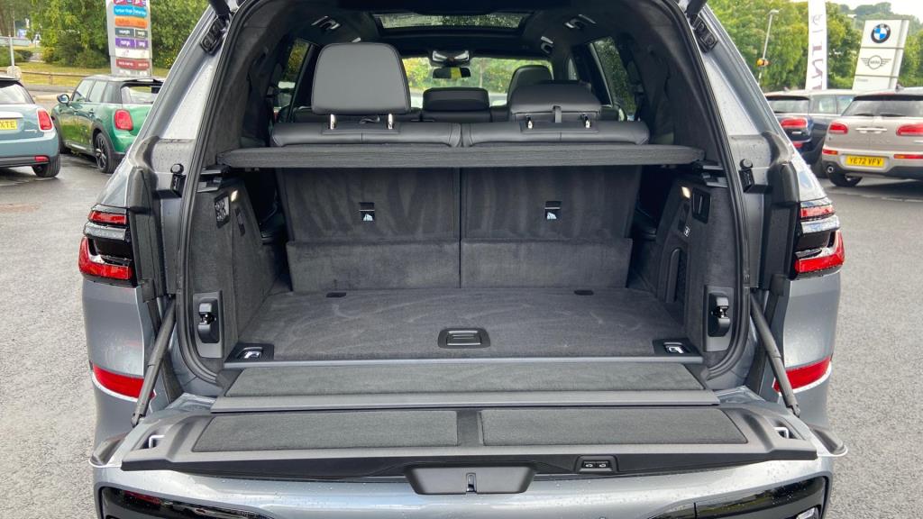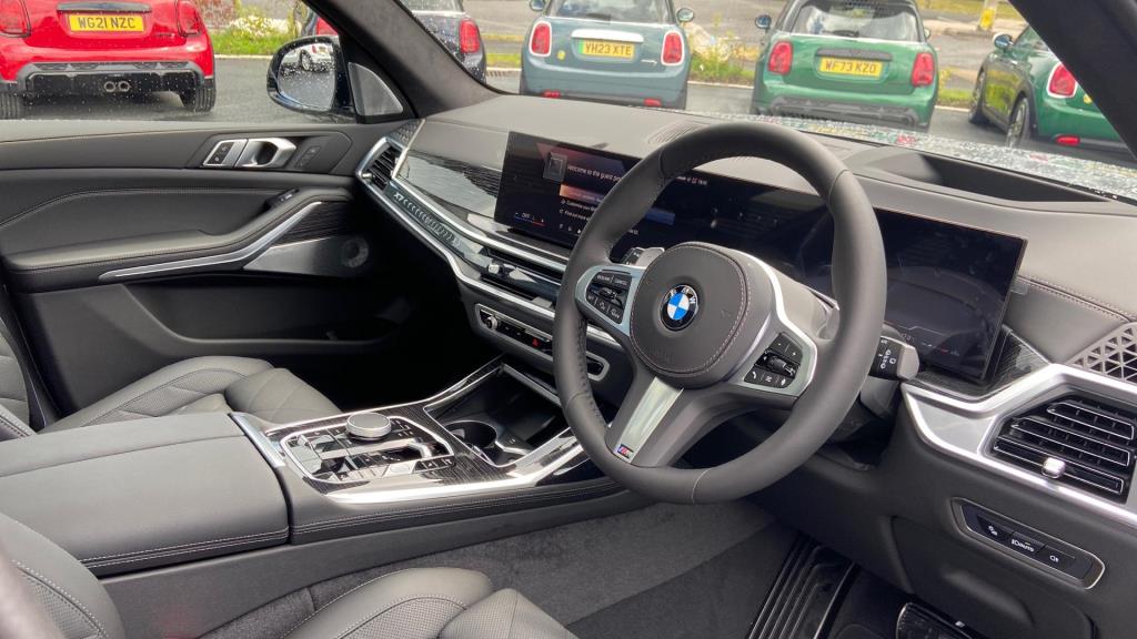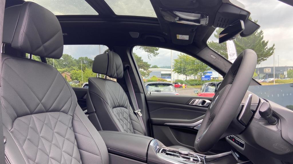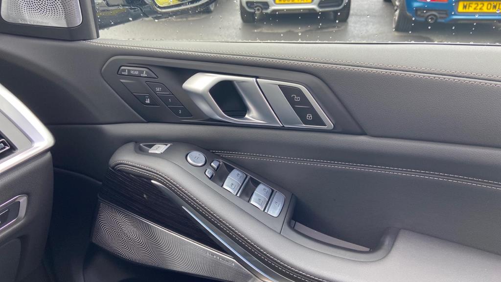 Doors 5 Features 23" V-spoke Style 914 BMW Individual Bic, M Sport Exhaust System, M Sport Brakes with Blue Calipers, Tyre Repair Kit, M Sport Seat Belts, Sky Lounge Panoramic Glass Sunroof, Sun Protection Glass, Driving Assistant Professional, Bowers & Wilkins D Body Type SUV Seats 7 Interior / Comfort Adjustable Steering Column, Air Conditioning - front, All Round Electric Windows, All Round Electric Windows, Cruise Control, Interior Options, Mats, Outside Temp Gauge, Rear Head Restraints, Seats - Heated Front, Seats -Elec Adj Driver + Front Passenger Exterior Features Central Locking, Central Locking, Electric Folding Door Mirrors, Electric Sunroof, Front + Rear Parking Sensors, Front + Rear Parking Sensors, Front Foglights, High Level Brake Light, Roof Rails/Rack, Electric Sunroof, Front + Rear Parking Sensors Emission Class Euro 6d Consumption Extra Urban L/Km / Mpg Consumption Urban Cold L/Km / Mpg Consumption Combined 10.6 L/Km / 26.7 Mpg -