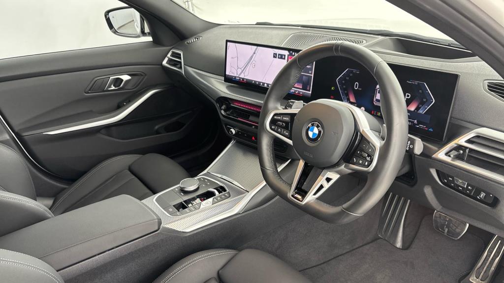 This 2025 BMW 3 Series 320i M Sport is a BMW manufacturer approved vehicle with only one owner from new. It features a powerful 2.0 litre petrol engine, meeting Euro 6 emission standards, and is presented in the sporty M Sport trim. Notable features include the advanced Driving Assistant system, Adaptive LED Headlights for superior visibility, and Sun Protection Glass for added comfort and privacy.