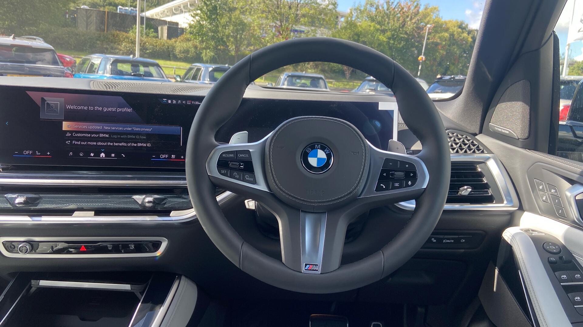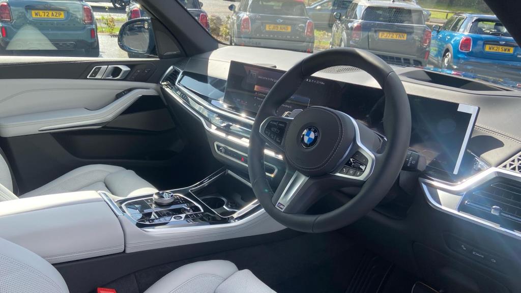 Doors 5 Features M Sport Exhaust System, 22" 742 M Double-spoke Bi-colour Alloy W, M Sport Brakes with Blue Calipers, Tyre Repair Kit, Towbar, Iconic Glow Kidney Grille, Acoustic glass, BMW Individual Lights Shadow Line, Soft-close Doors, Crafted Clarity Controls, Tr Body Type SUV Seats 5 Interior / Comfort Adjustable Steering Column, Air Conditioning - front, All Round Electric Windows, Cruise Control, Mats, Rear Head Restraints, Seats - Heated Front, Seats -Elec Adj Driver + Front Passenger, Seats -Elec Adj Driver + Front Passenger Exterior Features Central Locking, Electric Folding Door Mirrors, Front + Rear Parking Sensors, High Level Brake Light, Roof Rails/Rack Emission Class Euro 6d Consumption Extra Urban L/Km / Mpg Consumption Urban Cold L/Km / Mpg Consumption Combined 7.9 L/Km / 35.8 Mpg -