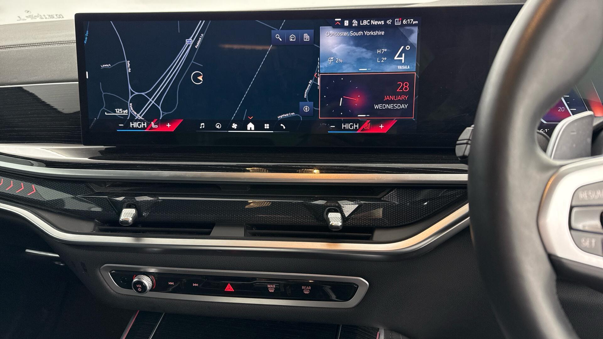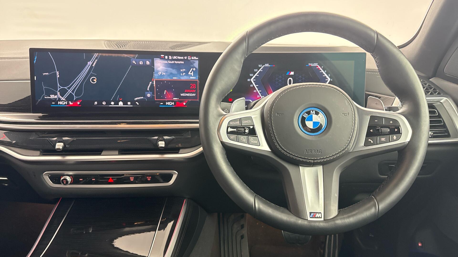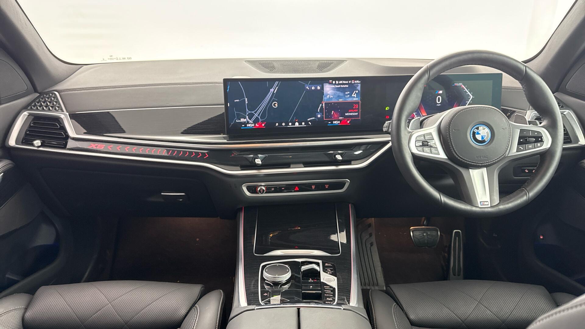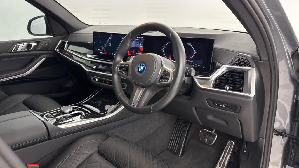 This 2025 BMW X5 50e M Sport is a BMW manufacturer approved vehicle, boasting a single owner from new. It features a powerful 3.0 litre petrol plug-in hybrid engine paired with a four wheel drive drivetrain, ensuring excellent performance and efficiency. This Euro 6 compliant model also offers a substantial towing weight of 2700 kg, making it a versatile choice. Inside, you’ll find luxurious comfort with Four Zone Automatic Air Conditioning, front massage seats, Ambient Air, and ventilated front seats, all contributing to a premium driving experience.