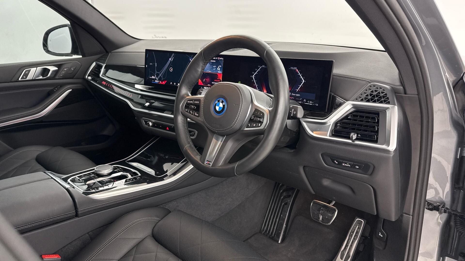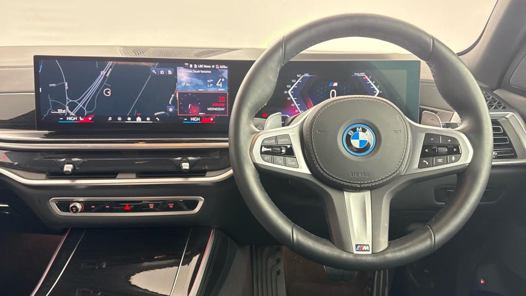 Doors 5 Features 22" 742 M Double-spoke Bi-colour Alloy W, M Sport Brakes with Blue Calipers, Tyre Repair Kit, Iconic Glow Kidney Grille, BMW Individual Lights Shadow Line, Soft-close Doors, M Sport Seat Belts, Front and Rear Heated Seats, Heat Comfort System, Four-z Body Type SUV Seats 5 Interior / Comfort Adjustable Steering Column, Air Conditioning - front, All Round Electric Windows, Cruise Control, Mats, Rear Head Restraints, Seats - Heated Front, Seats -Elec Adj Driver + Front Passenger, Seats -Elec Adj Driver + Front Passenger Exterior Features Central Locking, Electric Folding Door Mirrors, Front + Rear Parking Sensors, High Level Brake Light, Roof Rails/Rack Emission Class Euro 6d Consumption Extra Urban L/Km / Mpg Consumption Urban Cold L/Km / Mpg Consumption Combined 0.9 L/Km / 313.9 Mpg -
