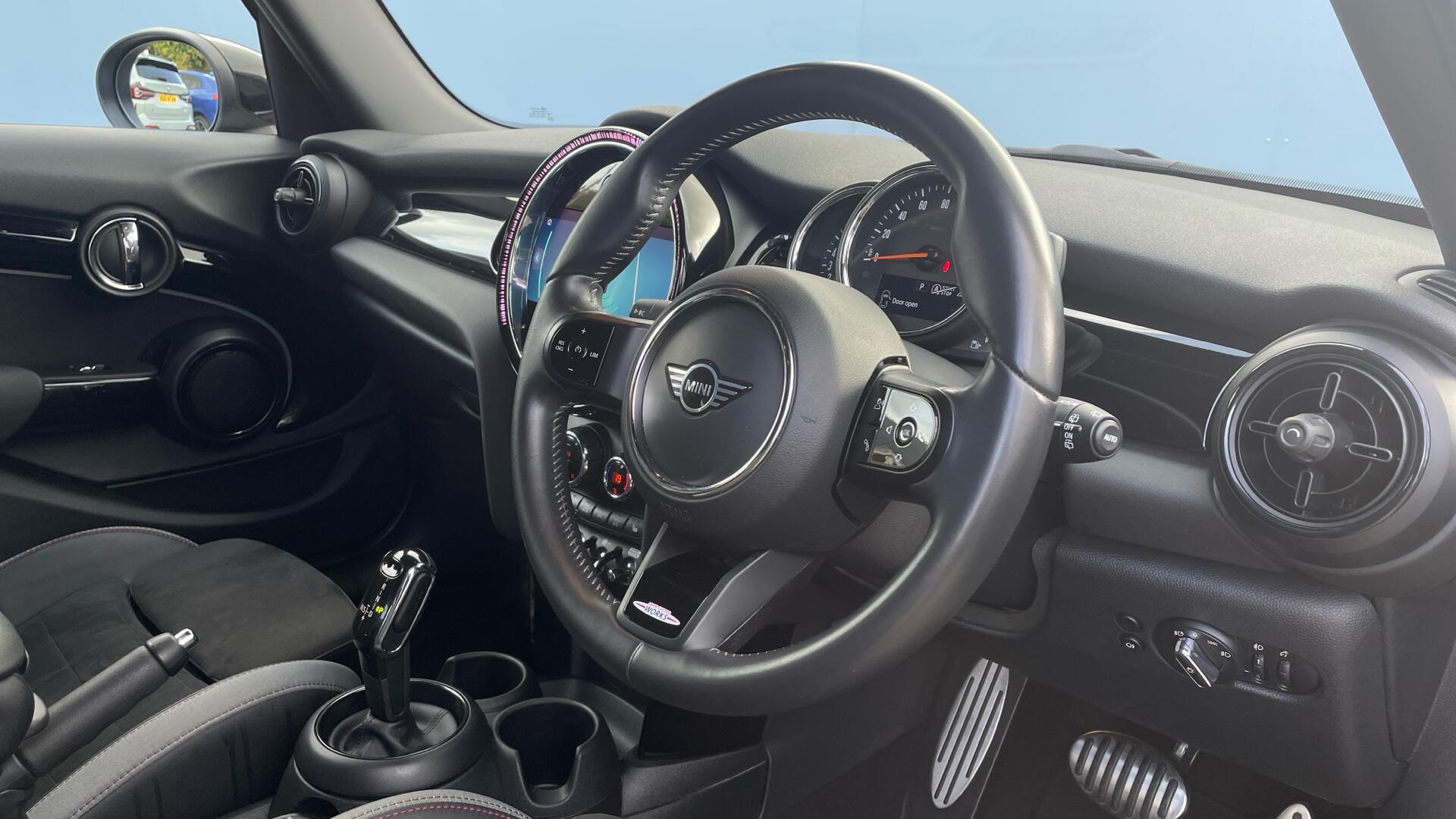 Doors 5 Features Steptronic transmission with double clut, Tyre Repair Kit, Comfort Access, John Cooper Works sport seats, Darkened Rear Glass, Front centre armrest, Storage Pack, Heated front seats, Rear Parking Sensors, Automatic Air Conditioning, Cruise Control, MINI E Body Type Hatchback Seats 5 Interior / Comfort Adjustable Steering Column, Air Conditioning - front, All Round Electric Windows, Cruise Control, Driver's Seat Adjustment (manual), Outside Temp Gauge, Rear Head Restraints, Split Rear Seat/Thru Load Facility, Air Conditioning - front Exterior Features Central Locking, High Level Brake Light Emission Class Euro 6d Consumption Extra Urban L/Km / Mpg Consumption Urban Cold L/Km / Mpg Consumption Combined 5.6 L/Km / 50.4 Mpg -