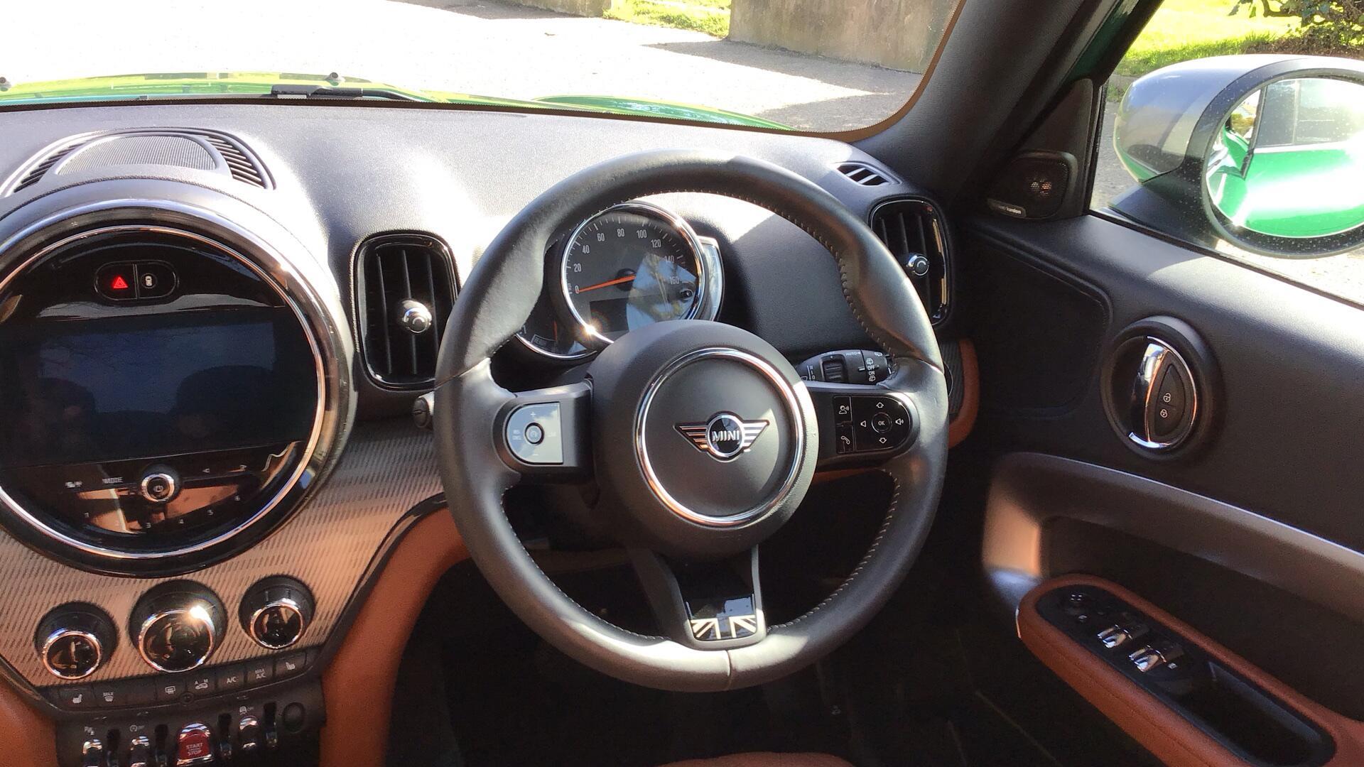 Doors 5 Features EU6 RDE II exhaust emissions standard, RDE additional contents, Steptronic transmission with double clut, Black Roof Rails, Rear view Camera, Piano Black Exterior, Electric Folding Door Mirrors, Comfort Access, MINI Excitement Pack, Panoramic Glass Sunroo Body Type SUV Seats 5 Interior / Comfort Adjustable Steering Column, Air Conditioning - front, All Round Electric Windows, Cruise Control, Driver's Seat Adjustment (manual), Interior Options, Mats, Outside Temp Gauge, Rear Head Restraints, Seats - Heated Front Exterior Features Central Locking, Central Locking, High Level Brake Light, Rear Parking Sensors, Roof Rails/Rack Emission Class Euro 6d Consumption Extra Urban L/Km / Mpg Consumption Urban Cold L/Km / Mpg Consumption Combined 6.3 L/Km / 44.8 Mpg -