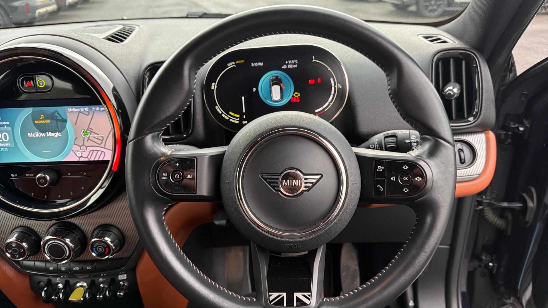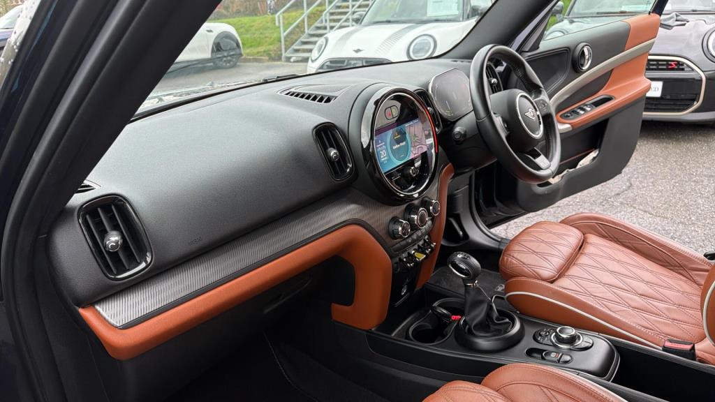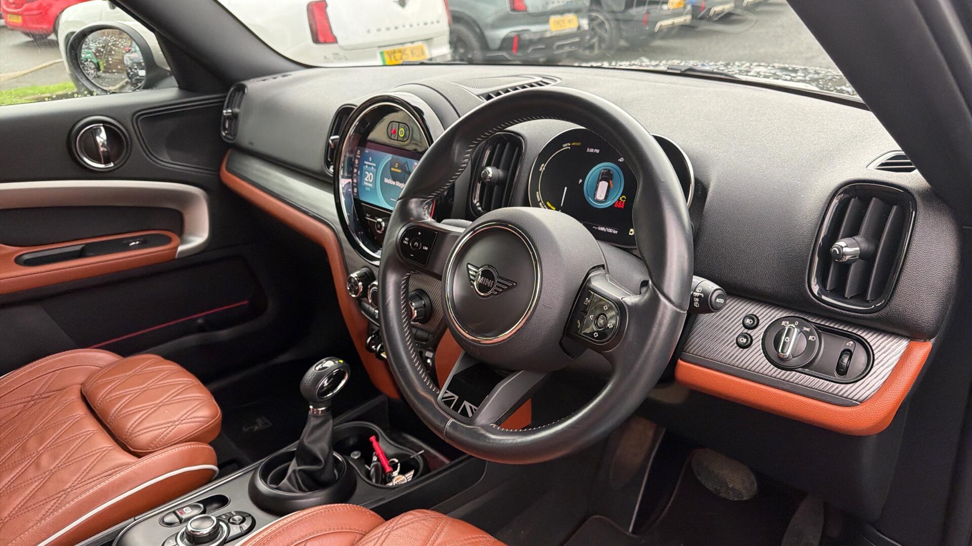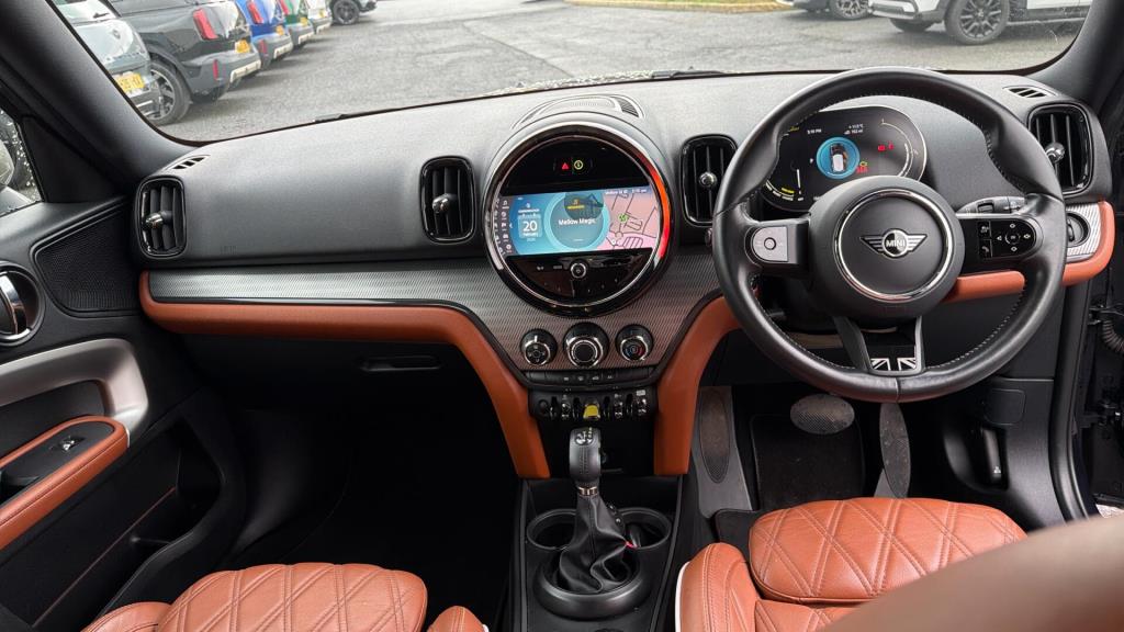 This 2022 MINI Countryman Cooper SE Exclusive boasts exceptionally low mileage for its age, having covered just 13,654 miles. As a MINI manufacturer approved vehicle, it comes with the assurance of quality and care. This four wheel drive model features a 1.5 litre petrol plug in hybrid engine, meeting Euro 6 emission standards. It has had only one owner since new and includes desirable features such as LED headlights, anthracite headlining, and a heated front windscreen for added comfort.