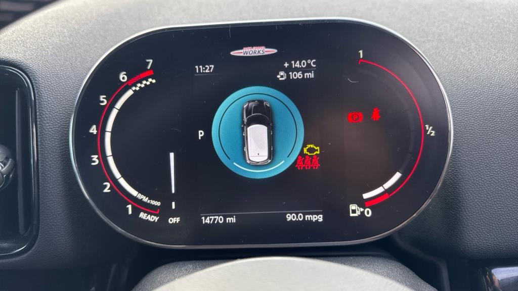 This 2024 MINI Countryman John Cooper Works is a rare find, having had only one owner from new and being MINI manufacturer approved. It boasts a powerful 2.0L petrol engine paired with a four wheel drive drivetrain, ensuring excellent performance and grip in all conditions. This Euro 6 compliant model comes equipped with the desirable Premium Pack, which includes essential features such as air conditioning, Apple CarPlay for seamless smartphone integration, keyless entry for convenience, rear parking assistance to aid maneuvering, and heated seats for added comfort. Further enhancing its appeal are the bright and efficient LED headlights.
