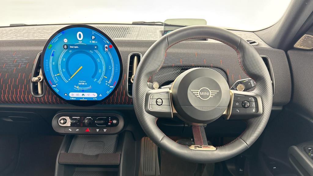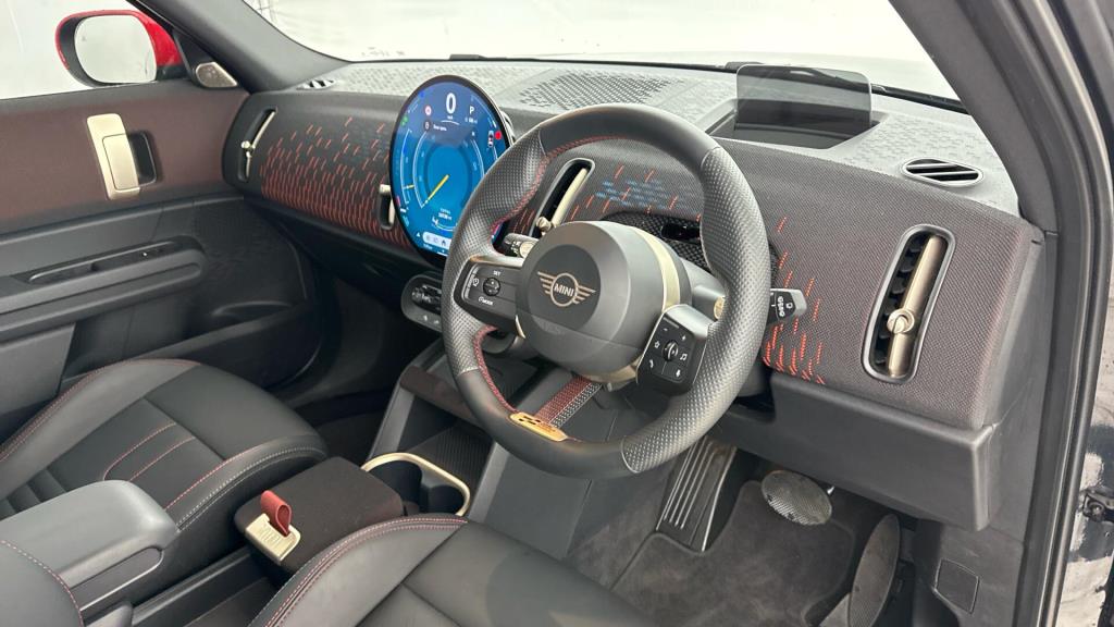 This 2024 MINI Countryman S Sport is a MINI manufacturer approved vehicle, meaning it has passed rigorous checks and comes with the assurance of MINI quality. This particular example has had only one owner since new and is presented in the Sport trim. Under the bonnet, it features a 2.0 litre petrol hybrid engine, paired with a four wheel drive drivetrain, ensuring capable performance in various conditions. It meets the Euro 6 emission class standards. For added comfort during colder journeys, this Countryman is equipped with a heated steering wheel.