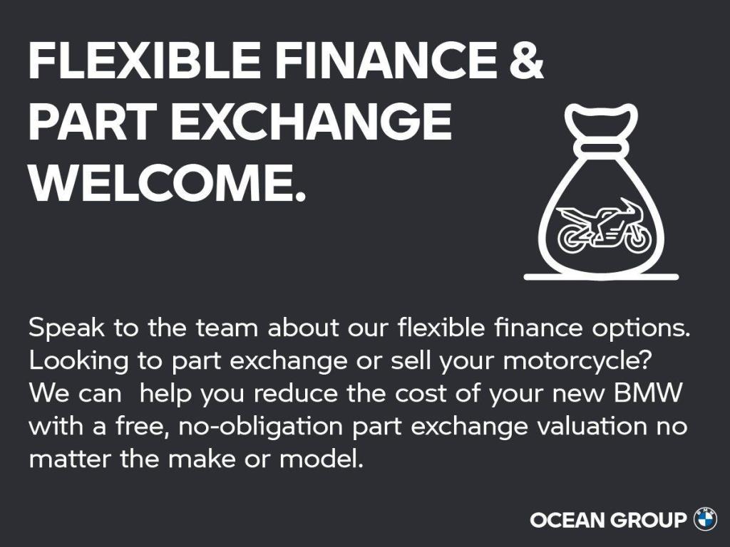 Grevan Cars Ltd trading as Ocean BMW Motorrad is a credit broker not a lender. Ts&Cs apply. Finance from BMW Financial Services. Available for new motorbikes ordered by 31/03/26 and registered by 30/04/26, subject to status, UK only, guarantees may be required. Motorbike condition, excess mileage and other charges may be payable. You have a 14-day statutory right to withdraw from the agreement. Grevan Cars Ltd trading as Ocean BMW Motorrad commonly introduce customers to a selected panel of lenders including BMW Financial Services. We receive a fixed commission for introducing you to BMW Financial Services calculated by reference to the vehicle or as a percentage of the amount you borrow. We do not have any discretion to vary the interest rate or APR you pay under your finance agreement. An introduction from us does not amount to independent financial advice